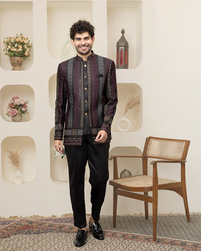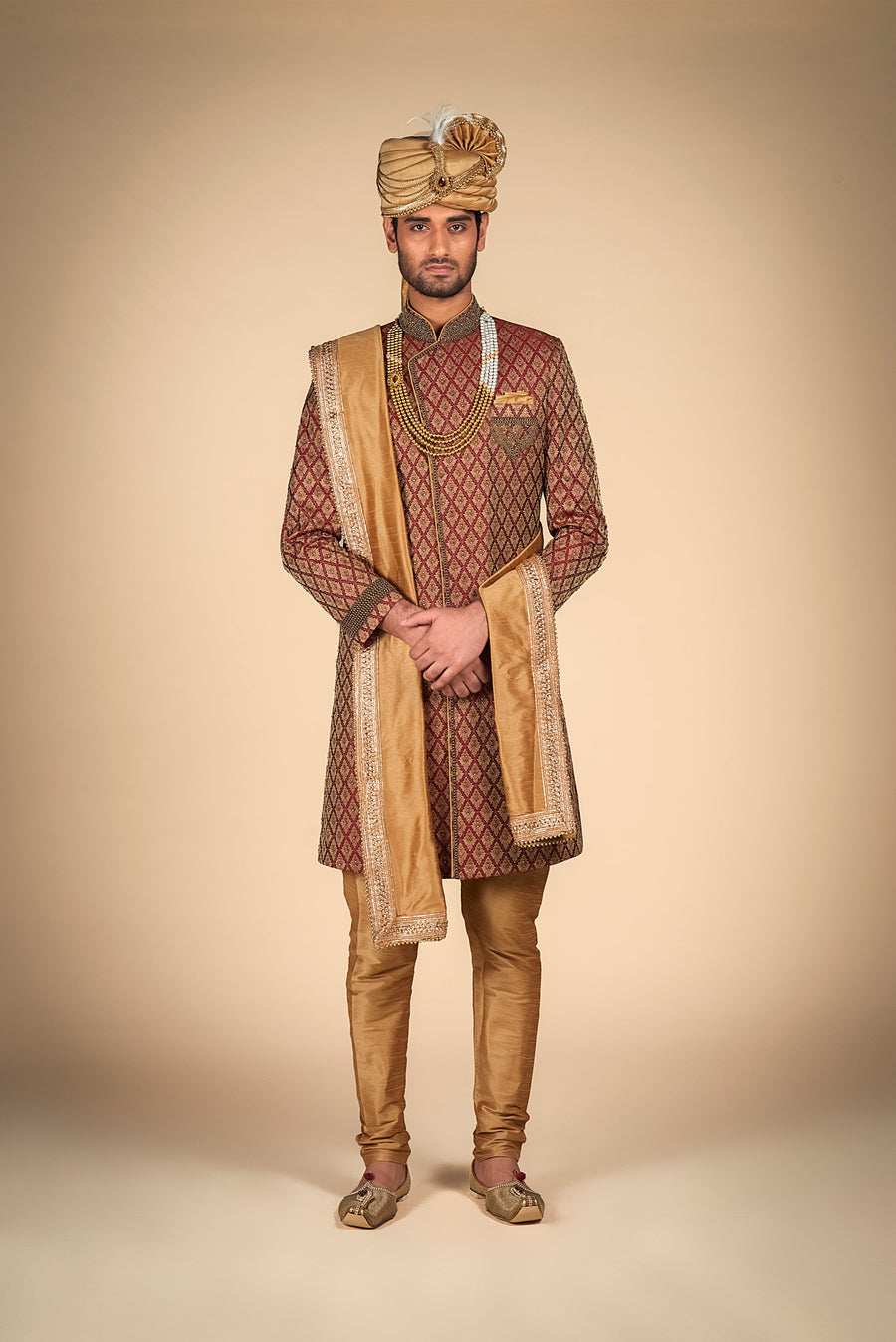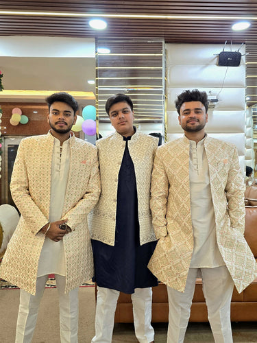 Handcrafted sherwanis that blend tradition with modern style, featuring premium fabrics and royal detailing – perfect for your wedding day.