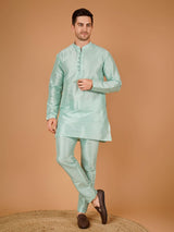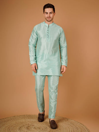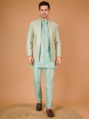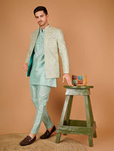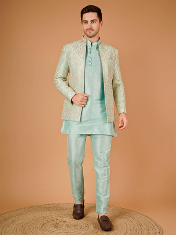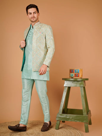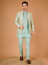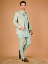 From Pooja to pre-wedding celebrations, this turquoise blue blazer will elevate your men's wardrobe with ease. Classic ethnic vibes with modern comfort.