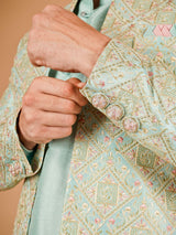 Stand Out in Style: Turquoise Blue Blazer from Our Men's Ethnic Line