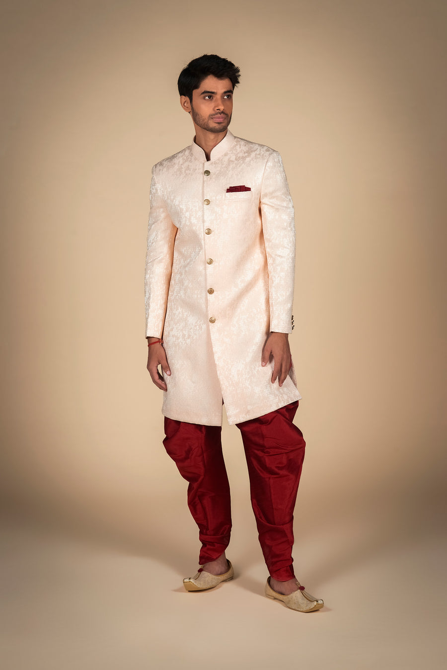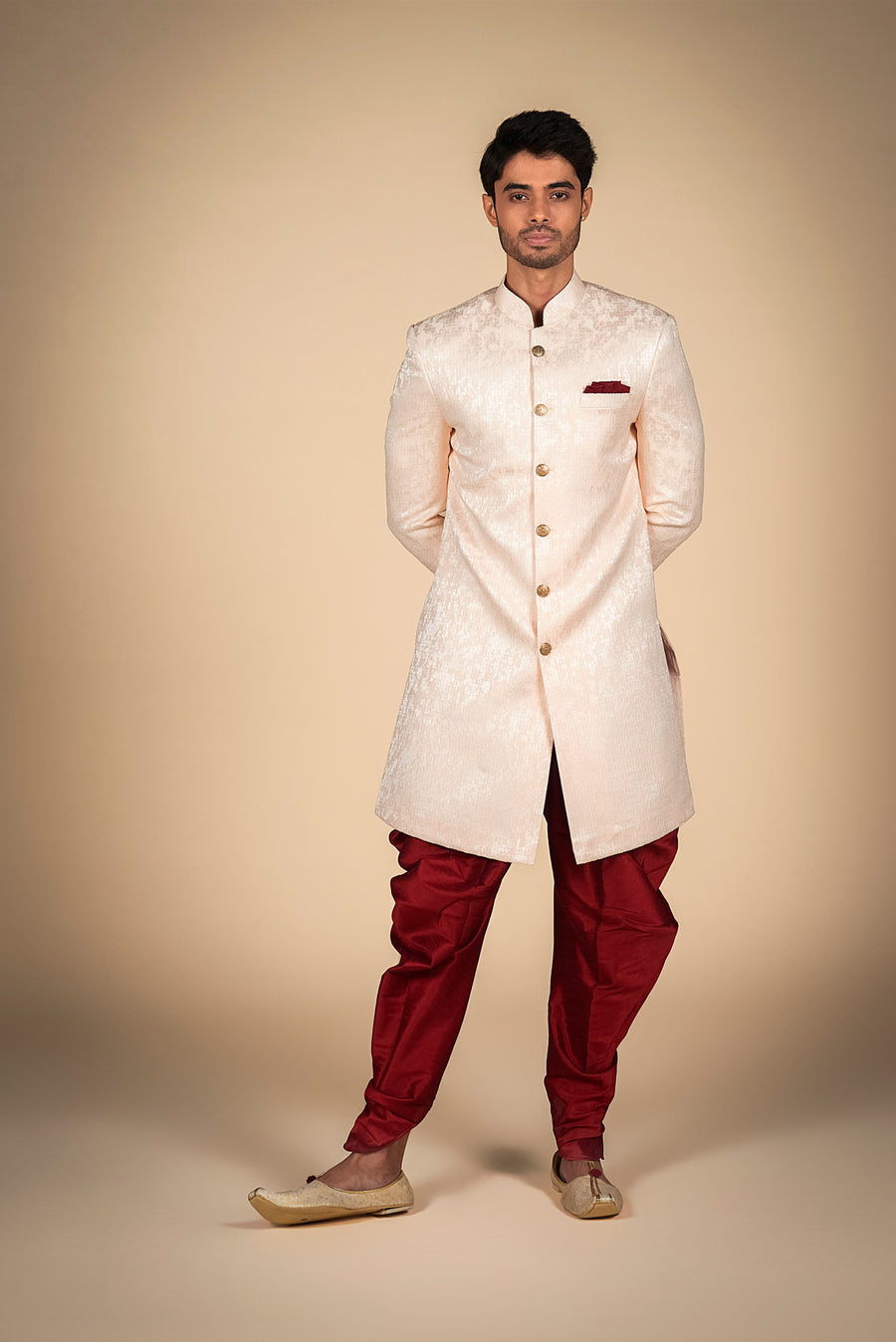 Crafted for comfort and visual appeal, this outfit in red is part of our premium Men's formal range—blending soft textures with festive aesthetics.
